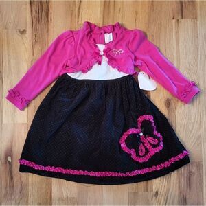 NWT. Faux jacket top with a full Corduroy skirt. Ribbon applique and Rhinestone details. Size 4t Bin 14 #barbiecore