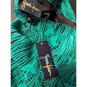 NWT Yumi Kim 100% Silk Printed Cocktail Mini Dress Ruffle strap One Shoulder Gre