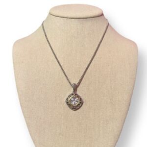 NWT Yurman Style Clear Rhinestone Filigree Pendant Silver Necklace