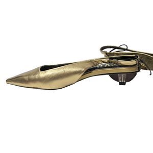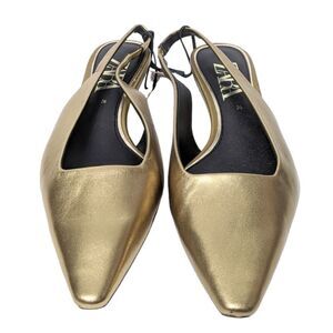 NWT ZARA Metallic Gold Leather Geo Heel Mules 36