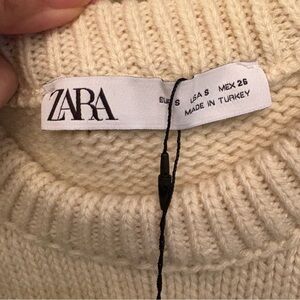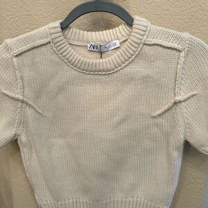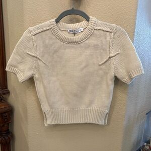 NWT~ZARA Off-White Wool Blend Knit Short Sleeve Sweater Size Small