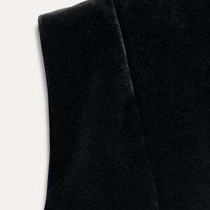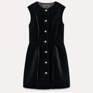 Short dress made of velvet fabric. Sleeveless. Round neckline. Peplum hem. Front embossed metal button closure.
