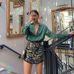 NWT ZARA SEQUINED SKIRT MINI GREEN AND BLACK