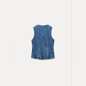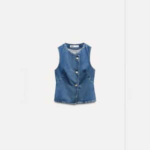 Round neck vest. Fitted waist. Front double breasted closure with gold buttons
