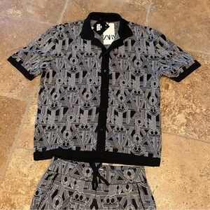 NWT~ZARA x DIAZ FAES Men Black White Patterned 2-Piece Set Top (M) Shorts (S)