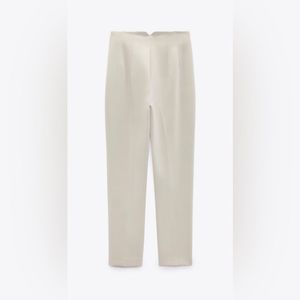 High waisted pants with pronounced seams at front and back. Front welt pockets. Front zip, metal hook, and inside button closure.