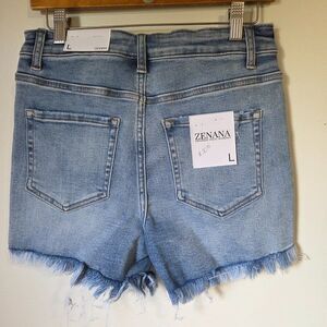 NWT ZENANA HIGH RISE RAW HEM STRETCH SHORTS SIZE LARGE WOMENS