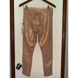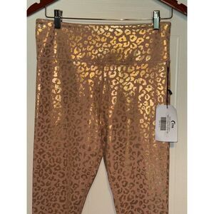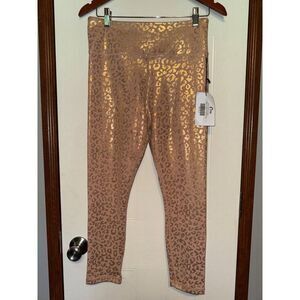 NWT ZYIA PINK METALLIC GOLD LEOPARD PRINT LIGHT N TIGHT HI-RISE LEGGINGS SZ 8-10