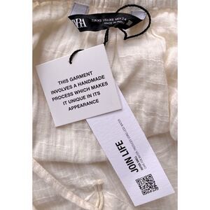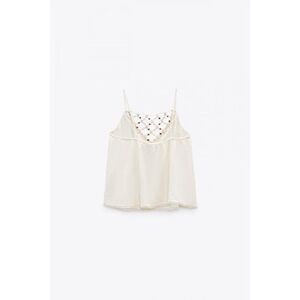 NWT Zara Beaded Macrame Knot & Fringe Cotton V-Neck Top in Ecru, Size XS