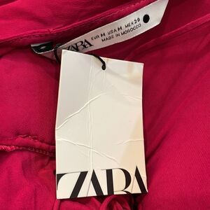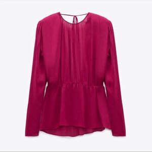 NWT Zara Semi Sheer Open Back Blouse Fuchsia Medium