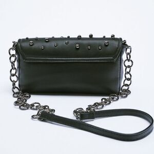 Crossbody bag with gunmetal beads on exterior. Lined interior. Gunmetal chain crossbody strap. Magnetic closure. Strap drop approx 19.5”. *Brand new with tags. Authentic brand