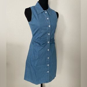 Sleeveless dress with lapel collar. Ruched detail. Front button closure. 98% cotton, 2% elastane. *Brand new with tags. Authentic brand