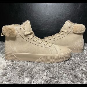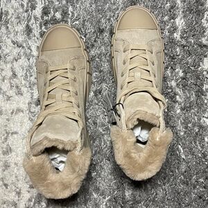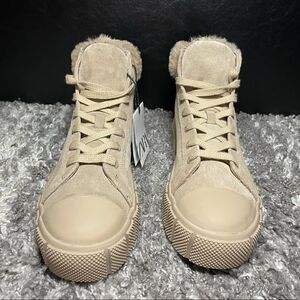 High top sneakers. Faux fur detail at back and tongue interior. Rubberized toe. Starfit flexible insole foam for increased comfort. Sole height 1.2”. *Brand new with tags. Authentic brand