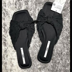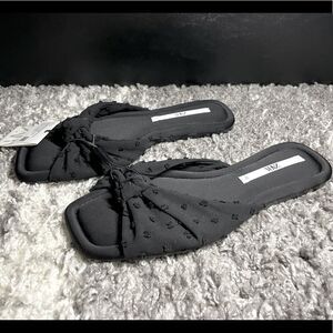 Flat sandals with front fabric strap and knot detail. Padded insole. Squared toe. Starfit flexible technical sole made of polyurethane foam designed to offer increased comfort. *Brand new with tags. Authentic brand