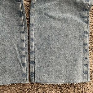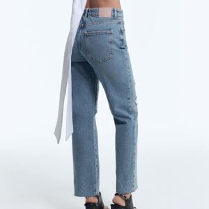 High-waisted five pocket jeans. Washed effect. Front ripped detail. Straight leg and unfinished hem. Front zip and button closure. Inseam approx 28” long. *Brand new with tags. Authentic brand