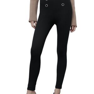 NWT Zara Jewel button high waisted leggings.Sz XL. Will fit Large size too. Black color. Elastic band. Pronounced front and west seam detail. False jewel buttons at front.