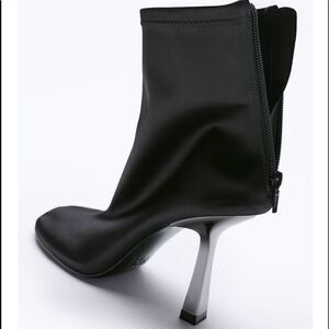 Black heeled ankle boots. Stretch upper. Metallic-look heel. Back zip closure. Airfit flexible sole made of latex foam design to increased comfort. Heel height 3.5”. *Brand new with tags. Authentic brand