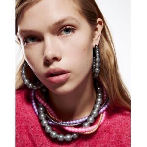 NWT Zara Pearl Mesh Necklace And Earrings Set