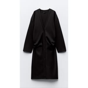 NWT-Zara-RUCHED LONG INTERLOCK JACKET-Small