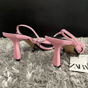Heeled leather sandals. 100% sheep leather upper. Crossed thin straps. Squared toes. Buckled ankle strap closure. AIRFIT®. Flexible technical sole made of latex foam designed to offer increased comfort. Insole 70% sheep leather, 30% polyurethane. Heel height approx 3.3”. Brand new with tags. Authentic brand