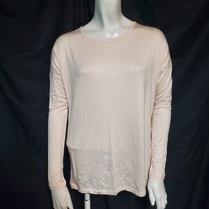 Zenana Outfitters ivory pink long sleeve scoop neck tee shirt.