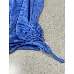 The NWT ZeroXposure 2 in 1 ruched athletic blue floral tank top in size M is a versatile and stylish piece perfect for various occasions such as travel, parties, or casual wear. Featuring a beautiful floral pattern, sleeveless design, and scoop neck neckline, this tank top offers a comfortable fit with its pullover closure and breathable material blend of polyester, spandex, and nylon. The tasseled and ruched sides add a trendy accent to this lightweight and easy-care garment, making it a great addition to your summer, fall, or spring wardrobe.