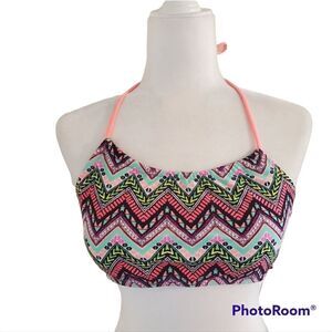 Trillium from Zumiez Spicy Chevron Neon multicolor Tribal print. Halter style with Removeable cup inserts versatile Bikini top