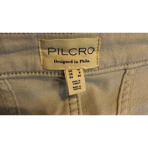 This elegant silver metallic maxi skirt by Pilcro features a stylish side-slit design, offering a modern edge to your wardrobe. Crafted with a blend of cotton, polyester, and spandex it ensures comfort and durability. The skirt is suitable for various occasions, providing a sophisticated and chic appearance. New with tags. Three pockets in the front, two pockets in the back. Zipper and button to close in front. See photos for approximate flat measurements. Edgy, feminine, sexy.