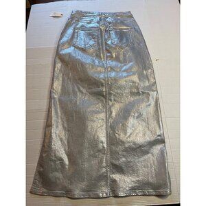NWT-anthropologie Pilcro Silver Metallic silver Side-Slit Maxi Skirt Size M