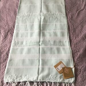 NWT 38x72 pareo, blanket, shawl, pashmina,soft aqua, white stripes, fringe, Turkish.