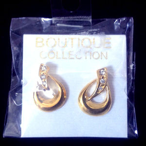 Cute Gold Plated Round Earrings with Rhinestones for Pierced Ears with a tab backing
