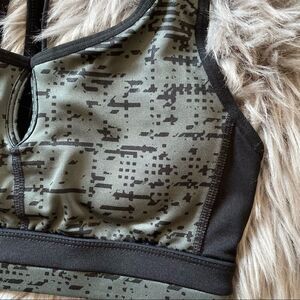 NWT C9 by champion green and black racer back printed sport bra with mesh panels for breathability, keyhole front details and removable pads.