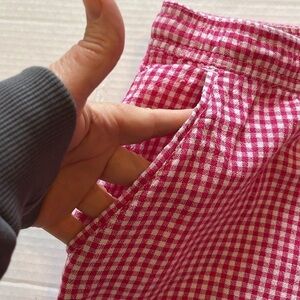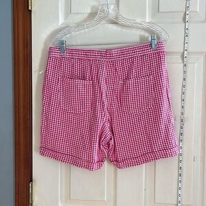 NWT-da-sh-M-Fuchsia/white-gingham, linen blend, high-rise, cuffed shorts.