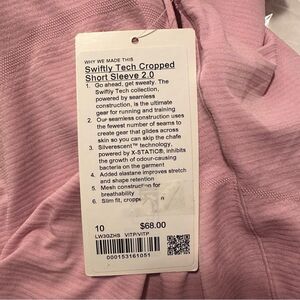 NWT lululemon 10 Swiftly Tech Cropped Short Sleeve Slim Fit Tshirt - Vital Pink