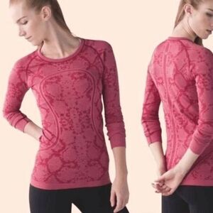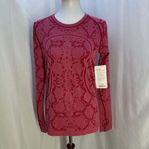 NWT lululemon Swiftly Tech L/S crew snake Pink/Cranberry thumbholes Sz 10