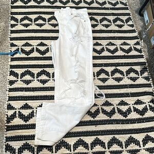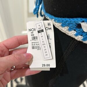 BP crochet blue black Ziggy strips and pre-loved white garage double zero jeans