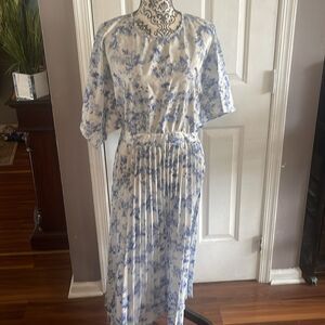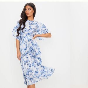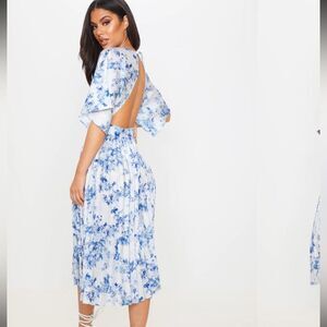 NWT pretty little things Pastel Blue Floral Print Open Back Pleated Midi Dress