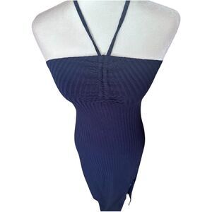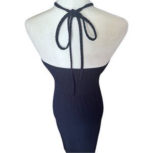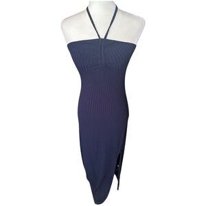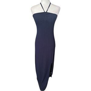 NWTs 1. STATE Navy Ruched Rib Knit Halter Maxi Dress Size S NWT