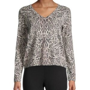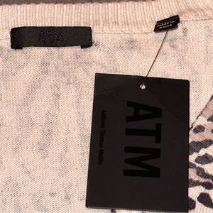 NWTs ATM Animal Print Cashmere Blend V-Neck Sweater Size Medium