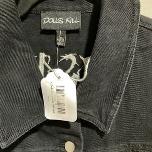 NWTs Dolls Kill Cropped Black Denim Jacket Women's Size Large Goth Grunge