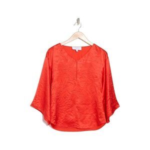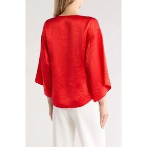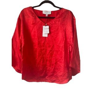 NWT's Equipment Femme Womens Blouse Top Silk Blend Red Bell Sleeve Size Small