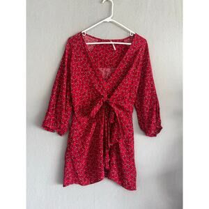 NWT's Free People Clara Floral Print Tunic Faux Wrap Red Mini Dress Size Xsmall