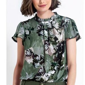 NWTs Go By Go Silk Garden Grove Print Short Sleeve Watercolor Popover (XS)
