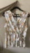 NWTs Harve Benard Ivory Flo Bird Blouse This elegant sleeveless blouse by Harve Benard features a sophisticated Faux wrap design with a tie front, showcasing a beautiful Ivory and gold color floral palette. The lightweight fabric and V-neckline make it a versatile choice for both casual and dressy occasions. Size XL 21” inches pit to pit Length 26” inches Waist 19” inches flat