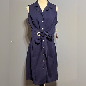 NWTs Ile NewYork navy blue button front collared dress with stretch size 10
