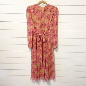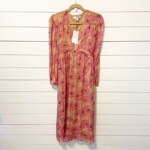 NWTs Joie | Kaz Dress in Sandstorm Multi 100% Silk Midi Length Size Large