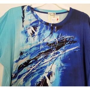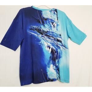 NWT's - Lemon Grass - Blue Print Tunic Pullover Short Sleeve Crew Neck Size S