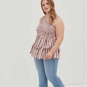 NWTs TORRID Pink Black Striped Tie Dye Smock Tiered Tank Top Size 3