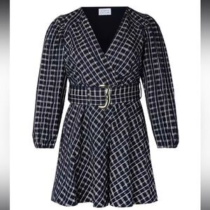NWTs Tanya Taylor Nicola Puff-Sleeve Belted Check Mini Dress Size 2