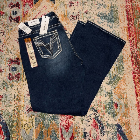NWTs Vigoss Women's Plus Size Flare Jeans in Dark Blue